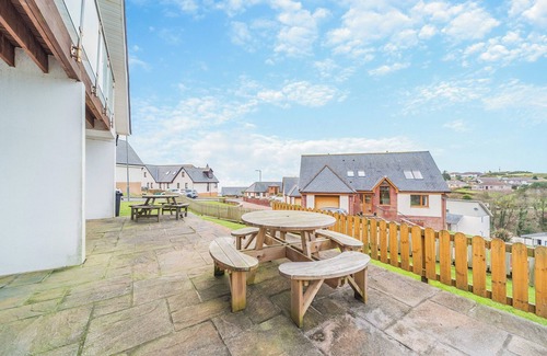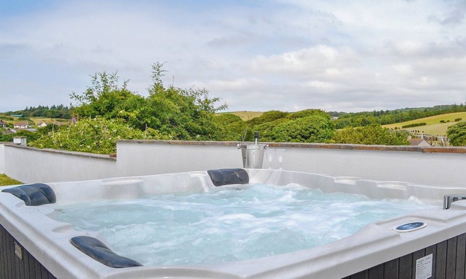 Bedroom 5: Zip And Link Super Kingsize Bed (2 x Singles On Request). Electric central heating, electricity, bed linen, towels and Wi-Fi included. Highchair available on request. Welcome pack.. Lawned garden with sitting-out area and garden furniture. Balcony. Hot tub for 6 (private). Bike store. Private parking for 2 cars; additional on road parking. No smoking. Please note: This property has a security deposit of £300.. Enjoying a wonderful setting with views over the picturesque town centre, harbour and out to open sea, these spacious, detached houses offer an ideal base from which to explore the surrounding area. No 4 (UK5569) has stunning views over the sea from most windows, and also from the hot tub. No 7 (UK5736) is situated next door to No 8 (UK5770) and has a spacious interior with pool table and hot tub to the rear, while No 8 also with a hot tub, has a first floor living room with pool table, bar and French doors leading out to the balcony.