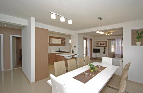This vacation home in the hinterland of Dalmatia awaits you only about 2 km from Zagvozd. The accommodation consists of two fully equipped vacation apartments. The well-maintained outdoor area with two pools is suitable for families with children, while the activity room will further enrich your stay. There are also several terraces and balconies at your disposal, as well as a barbecue and the play area. Here you will stay in a small village, far from the city noise, with a magnificent view of the Biokovo Nature Park. In only about 10 minutes by car you can reach beaches on the Makarska Riviera.