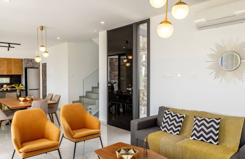 The Space: Step into a world of elegance as you enter this meticulously designed villa. With spacious interiors and stylish decor, every corner exudes sophistication and comfort. The villa boasts 5 bedrooms, each offering plush bedding and contemporary furnishings for a restful night's sleep. The master suite features a double sized bed and a private balcony, perfect for enjoying breathtaking views of the surrounding landscape.