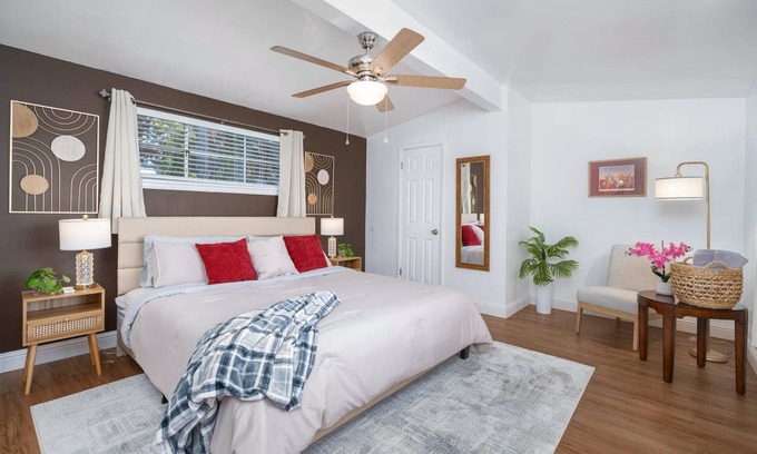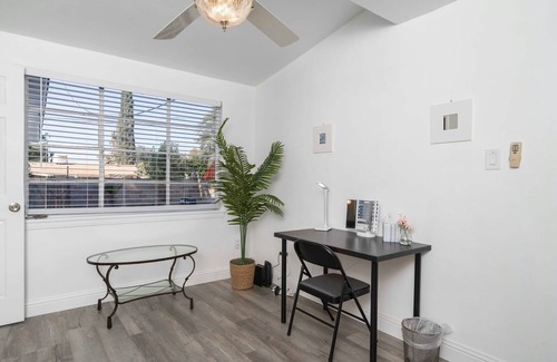 Enjoy our latest listing near Panorama Bluffs and Bakersfield College. A spacious 4-bedroom, 2-bathroom house is fully renovated and perfect for family, vacationers, business and health professionals alike. With five beds, floor mattress and sofa, the home can reasonably accommodate up to 9 guests. Fully furnished with modern amenities, including brand-new appliances such as 70" smart TV, central AC, washer, and dryer. A short drive to downtown and major hospitals and good access to Kern River Canyon.