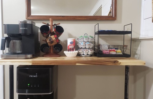 Enjoy a fully stocked coffee bar with a K-Cup and Carafe coffee maker, local artisan coffee, various teas, hot cocoa and assorted varieties of K- Cups.