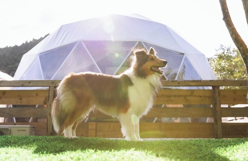 Equipped with BBQ facilities and natural hot springs even beginners can enjoy the outdoors with ease In addition there are activities to enjoy the great outdoors in the surrounding area / The dome side is equipped with a semiopenair bath and a separate toilet so women new to the outdoors and children can relax and enjoy a luxurious stay