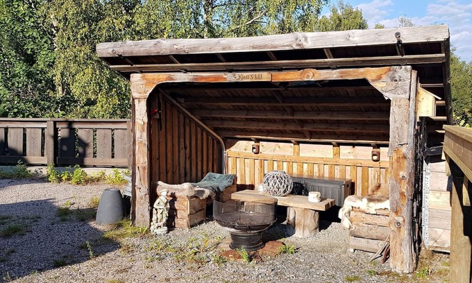Layout: open kitchen(cooker(electric), hood, coffee machine(filter), waffle iron, microwave, dishwasher, fridge, freezer(60-99L), washing machine), Living/bed room(30 m2)(TV(norvegian TV channels ), fireplace, netflix), bedroom(double bed), bedroom(3x bunk bed), bathroom(floor heating)(bathtub or shower, washbasin, toilet), carport, heating(electric), terrace(25 m2), garden furniture, BBQ, parking, air to air heatpump