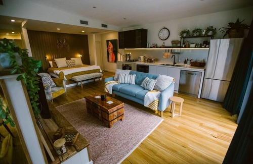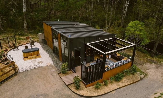 Unique and stylish, The Hideaway is located within Sylvan Glen Estate, privately situated between The Homestead and The Cottage. It's a couple's only retreat, with luxurious finishes including full kitchen, 72sq/m living area, deck, firepit and even a wood fired outdoor bathtub. Airconditioning, king bed with Egyptian linens, 16 sq/m ensuite with double shower, sun deck overlooking the Estate's 7th fairway. It's a special place for special memories - quiet countryside with city inclusions. Southern Highlands shopping and restaurants are a short drive or just stay on site without seeing a soul.