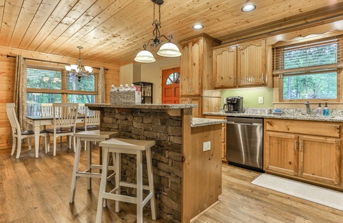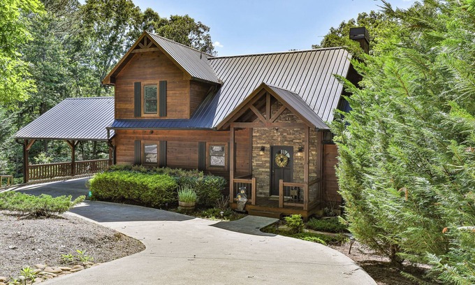 Welcome to Bear Paw Ridge in Coosawattee River Resort! Your escape to the North Georgia Mountains will feel like home away from home! We've gone to great lengths to make everything perfect, so you can relax and make memories that will last a lifetime. You'll enter this cabin on the main level. Here you will find the well equipped kitchen, dining room, family room, full bathroom, laundry room and King bedroom. Step out and check out the main level fully screened back porch area with LED lights ready to set the mood. There is direct access to the oversized 2 car carport area. You also have to the open air deck with brand NEW natural gas grill! Upstairs you will find a loft area with Grand Piano and sitting area. You will also step into the Master Suite with 2nd fireplace and spa bathroom that will set your mind at peace. On the basement level you will find a second living area, gameroom, and kitchenette. There is a bunk room with a set of Full/Full beds and Twin/Twin that will sleep 6. The hot tub is access on this level on the covered porch overlooking the fenced in yard and firepit. As added peace of mind, there is a whole house backup generator in the event of a power outage that is monitored with 4G link,so you will alway be up and running no matter what. The Coosawattee River Resort and surrounding Ellijay area has so much to offer once you are ready to get out and explore.