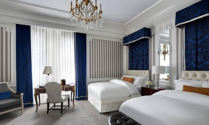 Stay comfortably in Midtown New York at this 1-bedroom 2 Bath @ 830 Sq ft suite within the St. Regis Hotel. This superb property offers a cozy full service retreat for guests. The bedroom features a king bed with a queen pull out bed in living room. The two full bathrooms include a jetted bathtub and a showers. Also includes small kitchenette and 24 hour in room dining. Stay connected with WiFi and enjoy the convenience of amenities like concierge support, in room dining, daily housekeeping, an expansive fitness room.