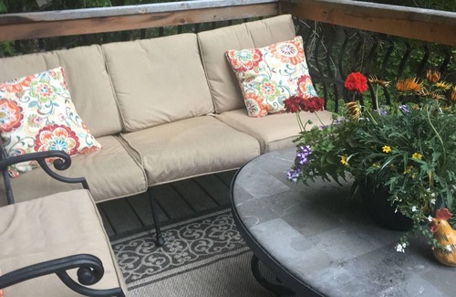 Upstairs is the master with a king bed and an en-suite bathroom complete with tub and shower. And a loft area, with a view of mountains, very cozy to read, relax or watch Netflix. 2 Lower level bedrooms. One with a King bed, one with 2 twin beds