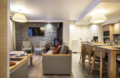 50m from ski slopes, fitness, swimming pool, sauna, hammam, balcony, fireplace or stove, tv is located in Lanslevillard. 50m from ski slopes, fitness, swimming pool, sauna, hammam, balcony, fireplace or stove, tv provides accommodation, featuring Spa, Hot Tub, Kitchen, among other amenities. This Apartment features Spa, Hot Tub, Kitchen, to make your stay a comfortable one.