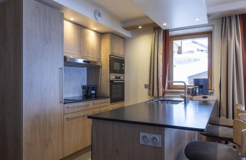 The residence Les Balcons Platinium Val Cenis***** promises a restful and relaxing stay in the mountains, in the heart of the Vanoise National Parc. The residence is ideally located in the heart of the village of Lanslevillard and nearby ski area and shops. This upscale and elegant residence blends in perfectly with its surroundings: stone cladding, larch cladding and plaster typical of Haute Maurienne. The 25 very spacious apartments can accommodate from 2 to 16 people and offer luxury equipment for an even more pleasant stay. Benefit from free access to the relaxation area with swimming pool, sauna, hammam, fitness area, paddling pool, jacuzzi. Surface area : about 118 m². Living room with bed-settee, stove. Bedroom with bath-tub, shower, double bed, WC. Bedroom with shower, double bed, WC. Bedroom with bath-tub, shower, 2 twin beds, WC. Bedroom with shower, 2 twin beds, WC. Kitchenette with special heater to prepare La Fondue, special heater to prepare La Raclette, kettle, 2 coffee machines (filtre et Nespresso Magimix), Wine cellar, multi-function oven, toaster, dishwasher, microwave, induction cooking rings, fridge-freezer. Shower room with shower, WC. Balcony.