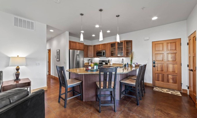 Welcome to Robber`s Roost Westward managed by Moab Utah Properties. This ground floor condominium is located in downtown Moab. Modern fully equipped kitchen, spacious two bedroom, two bathroom, and private patio with a Weber gas grill. Master King bedroom with ensuite bathroom. Second King bedroom has private access to the bathroom. Open floor plan living room includes a queen sofa bed and private patio access. Includes 2 designated parking spaces.