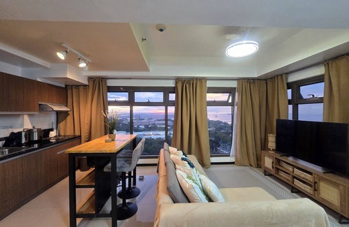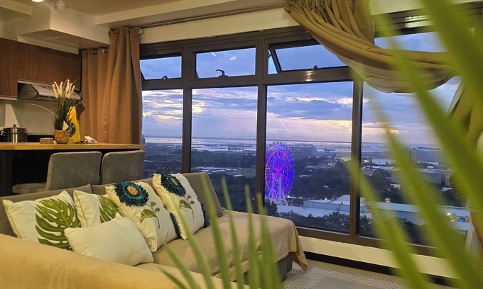 Spacious condo with breathtaking ocean and Manila Bay sunset views that comes with free parking. Relax with the whole family at this peaceful retreat with calming tropical greeneries surrounding our nature inspired home, in a place with so much amenities available to enjoy.