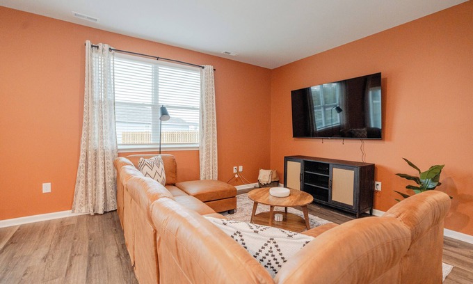 5BR/3B, Sleeps 13, Pets+, Garage - Orange is located in Wilmington. 5BR/3B, Sleeps 13, Pets+, Garage - Orange provides accommodation, featuring Parking, Bedding/Linens, Wellness Facilities, among other amenities. This House features Parking, Bedding/Linens, Wellness Facilities, to make your stay a comfortable one.