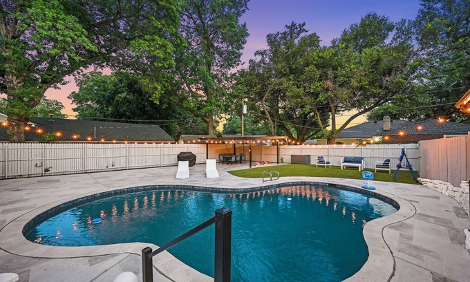 Situated on a spacious lot, this property offers a large yard for outdoor activities and a beautiful pool for cooling off on hot Texas days. Inside, enjoy a dedicated playroom for children and a kid-friendly bedroom with bunk beds and toys, making it a true family retreat.