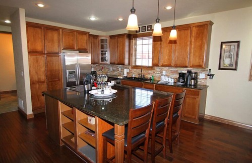 From early morning until late afternoon our home is filled with sunshine. It is thoughtfully appointed with high-end finishes throughout, including slab granite counter tops, custom tile and stone and beautiful wood finishes. Decorated in soothing rich colors, it offers the perfect blend of mountain ambiance and elegance making it the ideal choice for families or groups looking to enjoy a peaceful summer or ski vacation in the mountains.