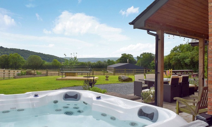 Bedroom 6: 2 x Single (3ft) Beds. Oil central heating (underfloor on ground floor), electricity, bed linen, towels and Wi-Fi included. Initial logs for wood burner included, remainder £5 per basket. Travel cot, highchair and stairgate available on request. Welcome pack. External games room (in garage) with pool table, air hockey, table tennis and darts.. Large, enclosed lawned garden with patio, garden furniture and BBQ. Bike store. Private parking for 10 cars. Hot tub (private). No smoking. Please note: This property has a security deposit of £300.. Solitude is a stunning, spacious, large three-storey home, situated in the heart of rural mid Wales, with wonderful views from all angles over glorious countryside of the Severn Valley.