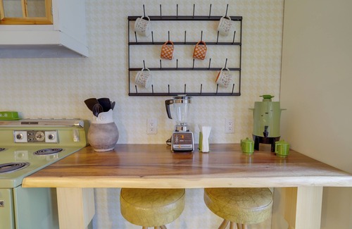 Experience small-town charm in Michigan at 'The Fox and The Houndstooth,' a 2-bedroom, 1-bath Coloma vacation rental! With a vintage-inspired interior, a full kitchen, and quiet countryside surroundings, this home offers the perfect escape. Sample wines at Karma Vista Vineyards or shop ‘til you drop at the Great Lakes Antique Mall. When evening comes, soak in the clawfoot tub or catch a lovely sunset on the deck!