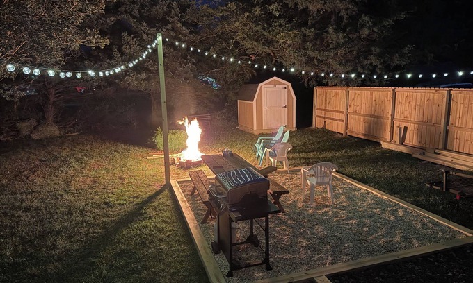 6 Min to the Beach Private backyard bikes games grill fire pit WiFi Dog Friendly is located in Savannah's Landing. 6 Min to the Beach Private backyard bikes games grill fire pit WiFi Dog Friendly provides accommodation, featuring TV, Security/Safety, Barbecue/Outdoor Cooking, among other amenities. This Cottage features TV, Security/Safety, Barbecue/Outdoor Cooking, to make your stay a comfortable one.