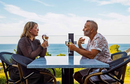 Beautiful holiday apartments by the sea and beach Abildgaard Apartments is one of Bornholm's most popular resorts. This is of course due to a combination of the beautiful location in Sandkaas close to the sea and the beach, as well as the opportunity to enjoy yourself in the hotel's swimming pool. Enjoy your holiday at Abildgaard Holiday Apartments Abildgaard Apartments have a beautiful location near the sea, beach and town. Here you get the best setting for your holiday on Bornholm. In the summer months, you can look forward to a dip in the pool and relax on one of the sunbeds with a good audiobook. Beautiful holiday homes at Abildgård Holiday Park in Sandkås Abildgaard Holiday Apartments in Sandkås offers a number of different holiday apartments that vary in size. Here you will find both holiday apartments for 2 people or holiday homes with space for up to 6 people. The family apartments for 4 or 5 people have access to the bedroom from the living room. In the apartments for 5 people, the bedroom has a bunk bed with 2 sleeping places and a single bed. The apartments for 6 people have two side rooms with two single beds each. Regardless of whether you are traveling with your better half or the family, you will surely find the right holiday apartment in Abildgaard Holiday Apartments in Sandkaas. What the holiday apartments all have in common is that they all have a kitchenette, bathroom and sofa area in addition to the beds. There are also apartments for 1 person, but these do not have a kitchenette. Associated restaurant Abildgaard Apartments has an attached restaurant, where you can buy breakfast, dinner or a delicious all-inclusive package with drinks. You can order and pay for this at the reception upon your arrival at Abildgaard Holiday Apartments Explore the area in and around Sandkaas Sandkaas and the surrounding area offer the best of Bornholm. Here you will find white sandy beaches and the beautiful and wellknown cliffs of Bornholm. Within walking distance of the Abildgaard Holiday Apartments is the smaller fishing village of Tejn, where you will find both shopping opportunities and a cosy harbour atmosphere with fishing boats and cafés. Remember to bring your walking shoes when you spend your holiday on Bornholm. The island has a wealth of different, beautiful hiking routes. Just in front of the holiday apartments along the coast winds the beautiful coastal path, Kyststien.