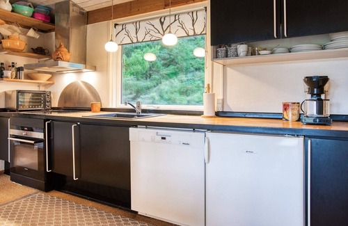 Layout: Kitchen(cooker(2 ring stoves), coffee machine, oven, oven(mini), microwave, dishwasher, fridge, fridge-freezer), Living/bed room(TV(german television channels, danish TV channels (DR1 and TV2), norvegian TV channels , swedish TV channels), chromecast), bedroom(double bed), bedroom(2x bunk bed), bedroom(double bed), bathroom(washbasin, shower, toilet, washing machine), mezzanine, heating(electric), garden furniture, air to air heatpump