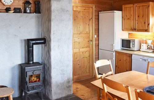 Layout: open kitchen(cooker(electric), hood, coffee machine(filter), waffle iron, microwave, dishwasher, freezer(200-249L), fridge-freezer, high chair), Living/bed room(27 m2)(TV(cable, german television channels, norvegian TV channels ), radio), bedroom(double bed, children's bed), bedroom(2x bunk bed), bathroom(floor heating)(washbasin, shower, toilet), mezzanine(2x single bed), heating(electric), terrace(8 m2), garden furniture, parking