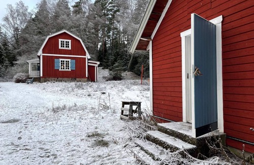 Welcome to Tegeltorpet at Brandalsund Manor. Here you have the opportunity to spend your holiday in a real beautiful and soothing environment in a pleasant and newly renovated cottage / house located on a scenic plot with both forest and water. In this house and in the adjacent guesthouse you live comfortably with beautiful views of the sea and meadows. The house is located individually, in Brandalsund's nature reserve with a comfortable distance to lovely baths but also close to central Stockholm, Trosa and Sörmland. Downstairs of the house you enter a smaller hall. To the left is a spacious living room with lovely sofa group, beautifully mullioned windows and wood burning stove and to the right is the large kitchen with space for many. In the kitchen there is a countertop stove with two plates and associated oven. It is possible to make a fire in the wood stove. On this floor there is also the fully tiled bathroom with shower and toilet, washing machine and dryer. Upstairs you will find the house's remaining rooms, a large living room with sofa bed for two people, and a junior bed. In the master bedroom located inside the living room there are two beds. Here there are window sections that create a beautiful view and contribute to a calm and comfortable atmosphere. The guest house located next door is also fresh and newly renovated and here there are two single beds. As a guest in this house, you arrange cleaning yourself. Via individual gravel road and road boom you reach this charming house located on Brandalslunds manor (privately owned castle) grounds with beautiful meadows and rural surroundings that include Brandalsund Nature Reserve. Just below the house you can swim by the beach and if you want to get to a sandy beach, you have walking distance to lovely sandy beaches with barbecue areas in the nature reserve. The rowing boat that you are welcome to borrow is located at the lake's edge below the house. In the garden outside the house there are nice outdoor furniturewith barbecue where you can enjoy lovely dinners. Enjoy nice walks in nature, take a trip to Trosa, only 30 minutes by car, a fantastic summer town with beautiful houses, nice shops and restaurants. Gripsholm Castle in cozy Mariefred is also a must! Other places to visit are Nynäs Castle with exhibitions, activities and café during the season and the Royal Palace Tullgarn, which you can reach in about half an hour. Around here there are many nice golf courses for those who want to play golf, closest are Kallfors Gk and Åda golf & country club in Trosa. It only takes about 35 minutes by car to central Stockholm. The list goes on and on of all this holiday home has to offer. A warm welcome to this idyll!