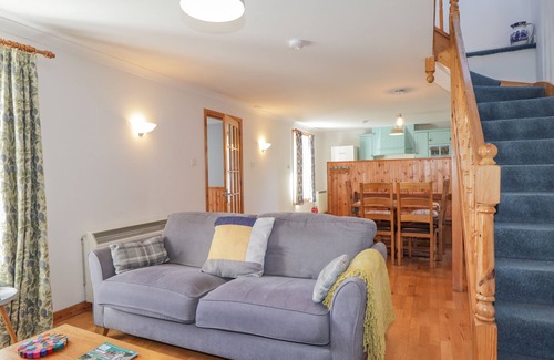Amenities: Electric storage heaters with underfloor heating in bathroom and open fire. Electric oven and hob, microwave, fridge, washer/dryer, TV with Sky, DVD, CD/radio, telephone (local, national and emergency calls only), WiFi, selection of books, games and DVDs. Cot and Highchair available. Fuel, power and starter pack for fire inc. in rent. Bed linen and towels inc. in rent. Ample off road parking. Enclosed garden with furniture. Sorry, no pets and no smoking. Shop and pub 3 miles. Note: Sloping ceilings in bedrooms. Note: Mobile phone reception can be limited.
