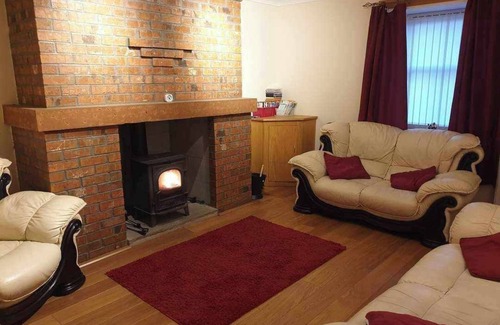 1 super-king size bed or 2 singles in all rooms, 1 ground floor bedroom & 2 upstairs bedrooms, cosy log burning stove if its cold. large bathroom downstairs with sink, toilet, bath and shower. Upstairs there is a shower room with sink and toilet. Travel cot and high chair available on request. Wifi is included in the cost