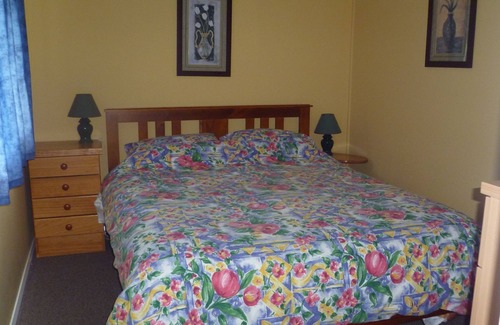 Queen bedroom, double and one set of bunks in separate area.