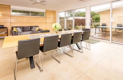 This beautiful appointed rammed earth beach house is located right on Beach Parade.