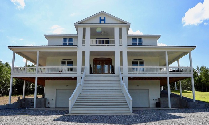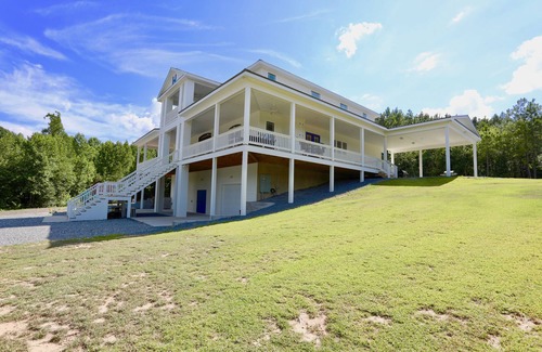 This Estate home is located on 20 acres just 12 minutes from parking/bus transport to the 2024 Pinehurst US Open and only 20 minutes from the home to the Village of Pinehurst. The home offers sleeping for up to 18 people, two kitchens, pool table, outdoor wrap around porches, plenty of parking space, and privacy you won’t get anywhere else! The home was custom built in 2020 and has numerous custom features throughout including a 20-foot ceiling foyer with custom staircase, tile showers, large primary suite, large bedrooms, special order oak hardwoods, custom trim, and an open living concept. There are 3 different grills (Treager, Gas, & Blackstone) for you to use should you wish. A large yard and several porch areas make it ideal for relaxing after a long day at the tournament. You will love the privacy and quiet country setting at the beginning and end of your day.