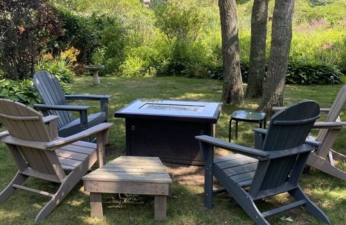 Enjoy your evenings sitting in adirondack chairs in front of the propane fire pit. Our backyard overlooks the Crowell marsh with wildlife to enjoy. Listen to the song birds and ducks, watch the squirrels play and rabbits as they come to visit.