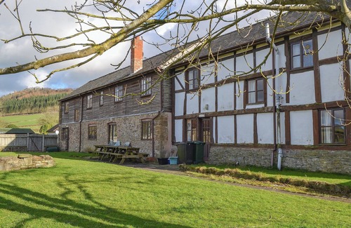 Bathroom: Bath With Shower Over, Toilet. Oil central heating, electric storage heaters, electricity, bed linen and Wi-Fi included. Initial fuel for wood burner included. Two cots and two highchairs. Initial fuel for wood burner included. Lawned garden with patio furniture and barbecue. Private parking. No smoking. Visit England 3 star. Please note: Towels and cot linen are not provided.. This roomy and most well-equipped detached barn conversion is one of those rare holiday properties that can accommodate the larger family party in comfort and style. It boasts a wealth of old oak beams and half-timbered walls, with twin stairs to each wing, and plenty of space to spread out. There’s a children’s sitting room, plenty of bathrooms and some en-suite facilities, and large gardens with meadows and woodland beyond, forested hills an easy walk. The barn is 2 miles from the border Marches town of Craven Arms, close to Stokesay Castle and Acton Farm Museum, and handy for hill walking on Wenlock Edge, The Wrekin and Long Mynd. Ironbridge Gorge museums, Severn Valley Railway and medieval Shrewsbury all an easy drive. Shops and pubs 2 miles.