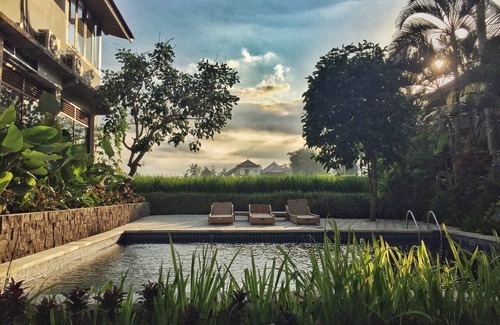 Great views everywhere you look! Rice paddies and amazing nature of Bali are surrounding the villa all around. A small organic restaurant is only 500m away from the villa and the downtown Ubud with it's great choice of Cafes, bars, shops and museums is 2,5km away. You can get there anytime with the complimentary driver service.