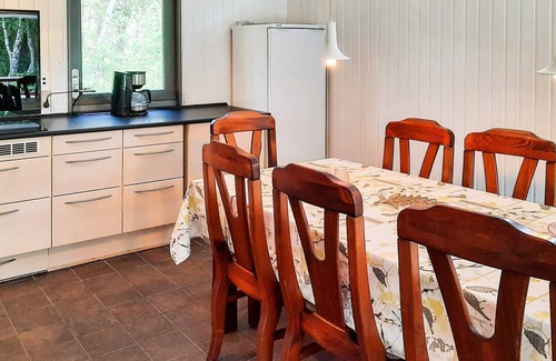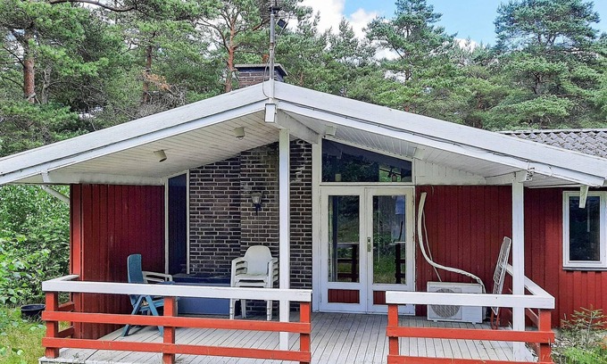 Holiday home located in a quiet holiday home area in the woods and within walking distance to the sea at Als Odde. Kitchen with dining area and exit to the terrace. Living room with wood burning stove and access to covered terrace. There is a double bedroom, a bedroom with a 3/4 bed and a room with two bunk beds. Bathroom with shower and toilet as well as laundry room with washing machine, dryer and separate freezer. The house is located on a large natural plot and close to fishing opportunities. Not for rent to youth groups.