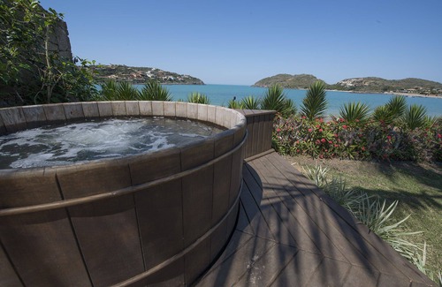 House by the sea, with 1000 square meters of private area. There are 7 suites (all with air conditioning, TV, and 300-thread count sheet), living room, TV room, 17-meter lap pool, which embraces the house, with shallow area, sauna, barbecue, gardens, lawn and outdoor hot tub. Ideal environment for adults to rest simply by gazing at the sea in the hot tub, or reading a book, and children to play running in the large flat area of the house and gardens, or jumping in the bounces. The house has three employee rooms, laundry, and parking for 4 cars. Os hóspedes contam com o serviço da cozinheira, arrumadeira e caseiro para tornar a estadia o mais confortável possível.