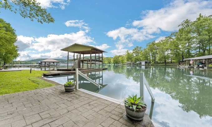 The large lot is yours to enjoy and recreate. There is a patio and firepit down by the lake as well as the boathouse with tandem double slip as well as a floating platform for standup paddle boards or jet skis. As mentioned, Blue Springs Marina is located directly across the lake from our home where you can rent pontoon boats. Blue Springs buys new boats each year for their rental fleet. They are high quality!