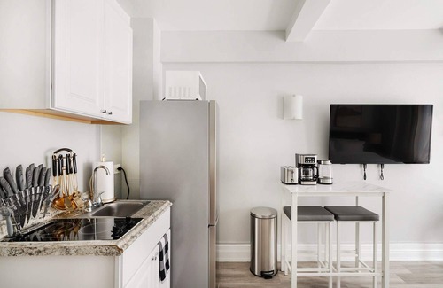 The queen-size bed with a plush memory foam mattress ensures a restful night's sleep, while the modern bathroom adds a touch of elegance. The Tempo Building Nestled just one block away from the West 72nd Street express subway station, our prime location positions you conveniently between the scenic Riverside and Central Park, The Tempo offers amenities, including a gym, a dedicated working area, an elevator, and a 24-hour doorman for security and peace of mind. This stylish studio is perfect for those seeking a hassle-free, move-in-ready Just bring your suitcase and settle in!