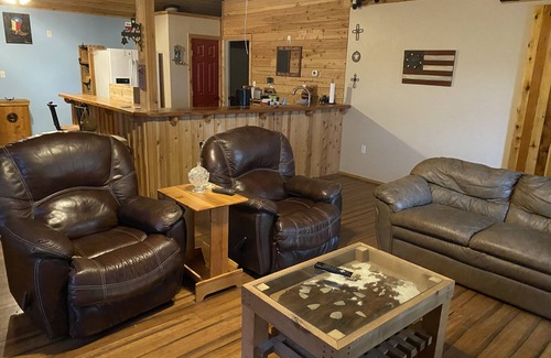 Beautiful lake view cabin on hill, large acreage for privacy. Fishing, sunbathing, barbecue, water skiing, privacy, spacious, large patio, grilling/Bar B Que. Short drive from Corpus Christi beaches and shopping.