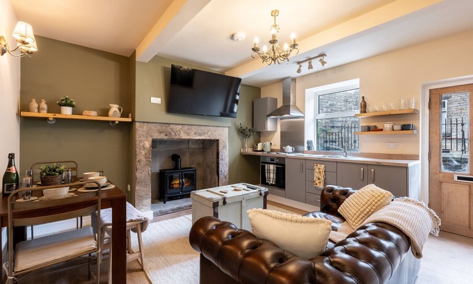 8 Booth Court, a ground-floor apartment has an open-plan kitchen, dining area and sitting area with electric fire, a double bedroom with TV, a twin (zip/link), and a shower room. Appliances consist of an electric oven and hob, fridge with freezer box, and Smart TV. Outside there is a rear courtyard with furniture and roadside parking. One well-behaved dog welcomed, but sorry, no smoking. WiFi, fuel, power, bed linen and towels are all included in the price. You'll find a shop and a pub in 0.1 miles. Enjoy the heart of Derbyshire at 8 Booth Court. Note: There are steps to the exterior and interior of this home. Note: The courtyard is not enclosed and has cobbled access.