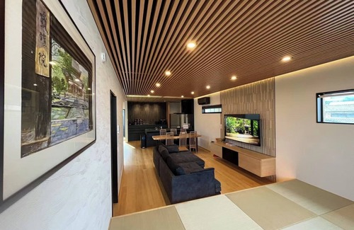 An 8minute walk from Dazaifu Station a 6minute walk from Gojo Station This newly built property features luxurious specifications reminiscent of a highend ryokan Ume no Yu Takenoya offers 4 bedrooms and 2 bathrooms The bathroom bath features a microbubble bath system generating microbubbles that transform the water into a silky milky white texture