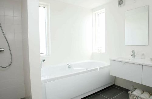 23 miles from Lindholm Hills in Brovst, 8 person holiday home in Brovst-By Traum offers accommodations with access to a sauna. The property is around 24 miles from Jens Bangs Stenhus, 24 miles from Monastry of the holy ghost, and 24 miles from Aalborg Historical Museum. Free Wifi is available throughout the property and Faarup Sommerland is 17 miles away. Offering a terrace, this vacation home also has a cable TV, a well-equipped kitchen with a dishwasher, a microwave, and a fridge, as well as 2 bathrooms with a hot tub. The accommodation is non-smoking. Guests can make the most of the warm weather with the property's barbecue facilities. Aalborghus is 24 miles from the vacation home, while Budolfi Cathedral is 24 miles away. Aalborg Airport is 19 miles from the property.