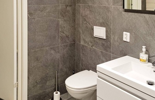 Layout: open kitchen(cooker(electric), hood, coffee machine(filter), waffle iron, dishwasher, fridge, freezer(200-249L), washing machine, high chair), Living/bed room(TV(german television channels, norvegian TV channels ), radio), bedroom(single bed), bedroom(double bed, children's bed), bedroom(double bed), bathroom(floor heating)(washbasin, shower, toilet), bathroom(washbasin, toilet), mezzanine(16 m2)(3x single bed), heating(electric), terrace(roofed, 80 m2), garden furniture, BBQ, parking