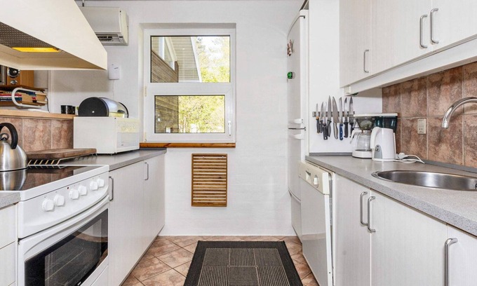 Nestled in Hojslev, this 4-bedroom, 1-bathroom vacation home brings it all within your reach. Fans of nature and the outdoors will love being 29 minutes by car from Monsted Kalkgruber and 27 minutes from Digterparken. Jump into your car and make short work of the 6-minute drive to Virksund Ravsliberi or the 15-minute drive to Hjarbak Fjord Golf Club (and enjoy the property's convenient onsite parking in the meantime).