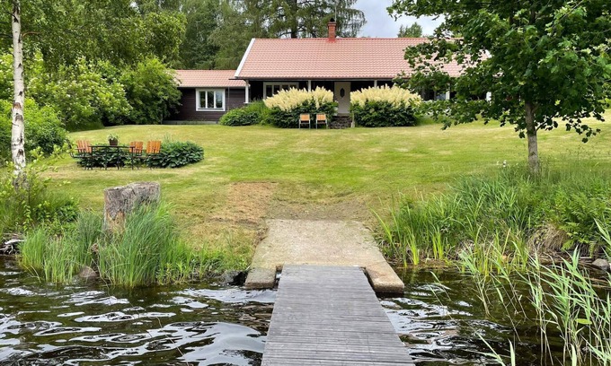 You live close to nature in the eastern part of Tiveden, Sweden's southernmost wilderness, in this spacious house. There are many nature experiences and cultural-historical sites to visit. Askersund with its picturesque city center and lovely walking paths can be reached in fifteen minutes by car. The living room is large and has room for many and provides space for social moments. If you want to relax for a while in front of the TV, it's fine here. The bathroom, which is equipped with a shower, wc and washing machine, is located downstairs. You reach the upper floor through a rather steep staircase and here you will find two bedrooms with double beds in each room, adjacent to the rooms is the hall where you have a stove that can spread cozy warmth. A stone's throw away you will find the spacious guest house where there are two single beds, from the guest house's small veranda you have a beautiful view down to the lake and the wood-burning sauna. On the outside veranda there is also a smaller glazed conservatory. Down by the lake is the rowing boat that gives you the opportunity to discover the Baltic Sea from the lake side. The boat also has an electric motor that takes you around the Baltic Sea at a comfortable pace. A stone-paved patio suitable for pleasant coffee breaks is located right down by the lake, and you can easily swim from the jetty where there is a bathing ladder. Discover Tiveden by bike, foot or by canoe, there are several options for those looking for an active holiday.