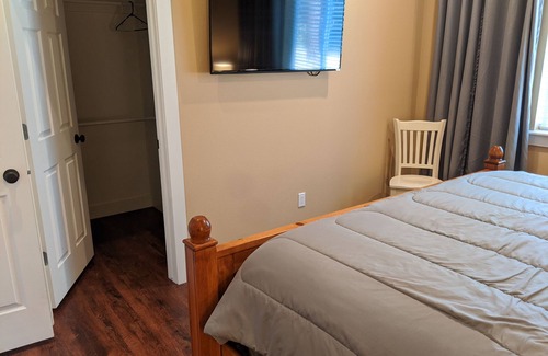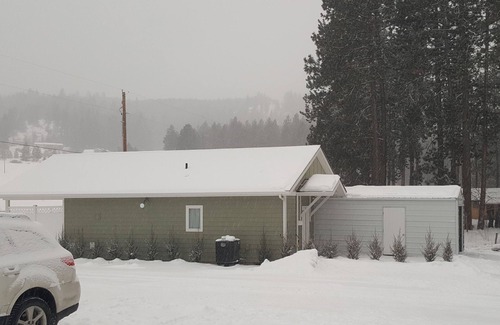 We are located just 1 mile from downtown Post Falls. Even though the owners live in the main house which is 70' away, the home is very private and we will stay out of your "business". Both owners are Registered Nurses and work full time at their jobs and businesses. The guest home has one king size bed, gas fireplace, air-conditioning, washer/dryer, covered back porch and a flat-screen TV in the living room and bedroom. Free wireless internet. There are two inflatable twin beds available for the kids.