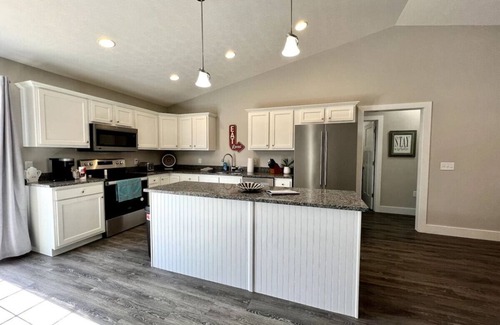 A blend of comfort, style, and convenience greets you as soon as you enter our newly built ranch home. While decorating this inviting retreat, we have worked hard to create a home away from home feeling for our guests.
