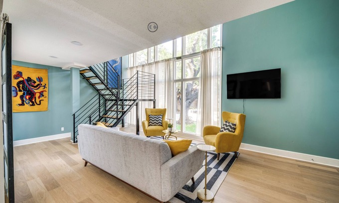 Enjoy a delightful extended stay at this bright vacation rental in Dallas, TX. Conveniently equipped with a well-stocked kitchen, 2 flat-screen TVs, a desk for remote work, and an in-unit laundry area, this 1-bedroom, 1.5-bath condo has you covered with all the necessities! Soak up the sun on the private patio before heading to the community pool for a refreshing swim — and don't forget to go for a scenic stroll around White Rock Lake and visit The Dallas World Aquarium!