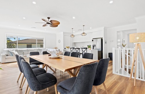 Welcome to "9 Woods Place", a splendid holiday rental nestled in the heart of North Narooma, a gem on the NSW coastline. This awe-inspiring retreat can generously accommodate eight guests, boasting four elegantly appointed bedrooms and three modern bathrooms.