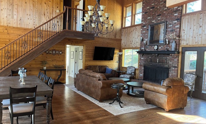Note on guest access: The house is not ADA compliant, but we have taken steps to make access to the main house wheelchair friendly with accessible parking and a ramp providing access to the main house. One downstairs bedroom and a large downstairs bathroom that are wheelchair accessible. Please check photos carefully and message host for handicapped access details.