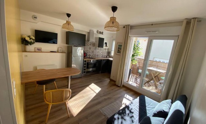 A 50 m de la plage, appartement de 35 m2: Les pieds salés is located in Bréhal, just a few steps from Bréhal Beach and 5.8 miles from Granville Train Station. Among the facilities at this property are a concierge service and private check-in and check-out, along with free Wifi throughout the property. The accommodation features a mini-market and bicycle parking for guests. The apartment consists of 1 bedroom, a living room, a fully equipped kitchen with a dishwasher and a coffee machine, and 1 bathroom with a shower and a hair dryer. Towels and bed linen are available in the apartment. The property has an outdoor dining area. Guests at the apartment will be able to enjoy activities in and around Bréhal, like windsurfing, fishing, and hiking. The apartment has a picnic area where you can spend the day outdoors. Granville's Marina is 6.7 miles from A 50 m de la plage, appartement de 35 m2: Les pieds salés, while Museum of Modern Art Richard Anacreon is 6.7 miles from the property.